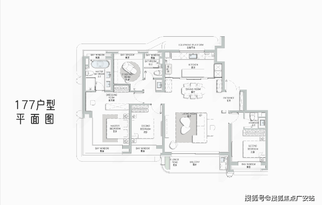 177m2艺术贵雅奢邸是海上·清和玺压轴力作,延续玺系经典的设计理念和思路,阔朗的四面大开间设计,客厅做到了大横厅设计,延续了曲面流体的阳台,并赠送了独具特色的阳台迷你花园。