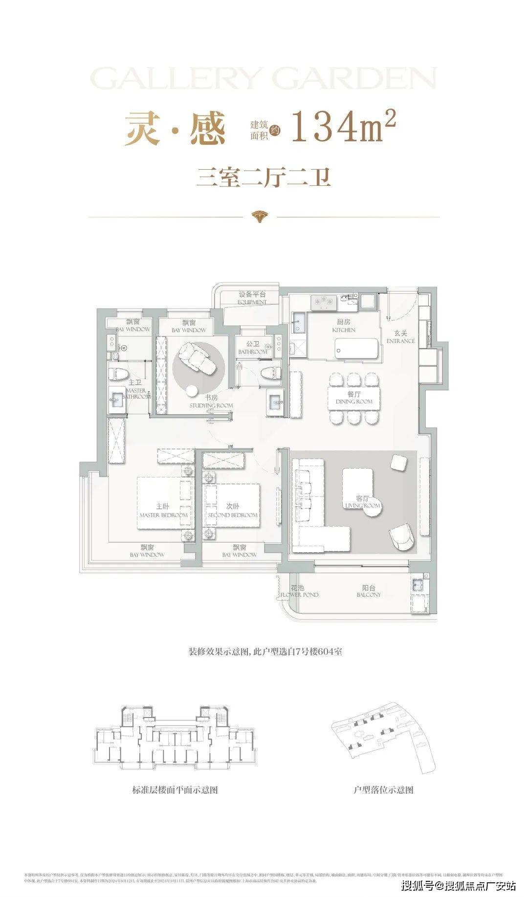 建面约134㎡3房2厅2卫,主力总价约1500-1700万,户型设计在上一个户型的基础上将各功能间尺度升级的同时,也做了一些更人性化的迭新。
