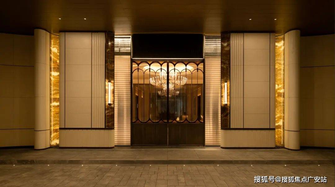 门庭延街的外立面,以精工定制弧形贝金米黄大理石为主调,镶嵌典藏级老虎玉大理石,点缀古铜色现代海派艺术感灯器,整体呈现出百年海派的贵雅气质。