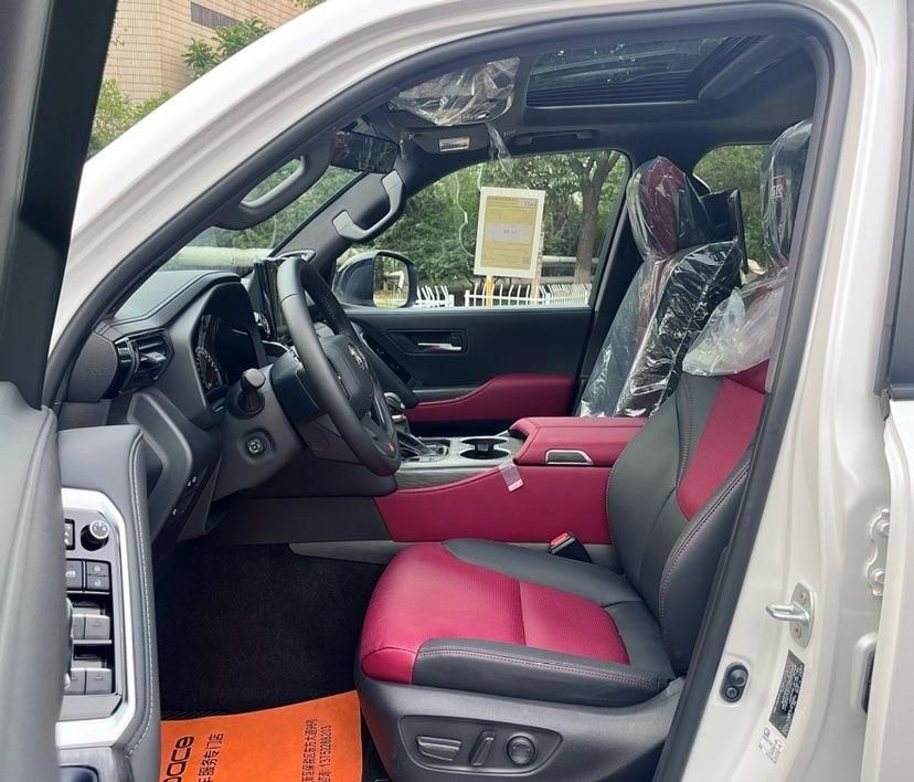 天津永杰行销售专线款丰田兰德酷路泽GR SPORT在车内也带来了意想不到的惊喜。车辆的内部装饰提供了纯黑和黑+酒红两种颜色组合,方向盘和座椅上的GR标志细节丰富,双拼色座椅的设计充满了时尚感。12.3英寸的全液晶仪表展现出强烈的科技氛围,前排座椅提供了加热和通风功能,极大地增强了驾驶和乘坐的舒适度;车辆的后排座位可以根据比例进行调整,7座的2+3+2布局非常灵活,无论是家庭出行还是长途越野,都能轻松应对。