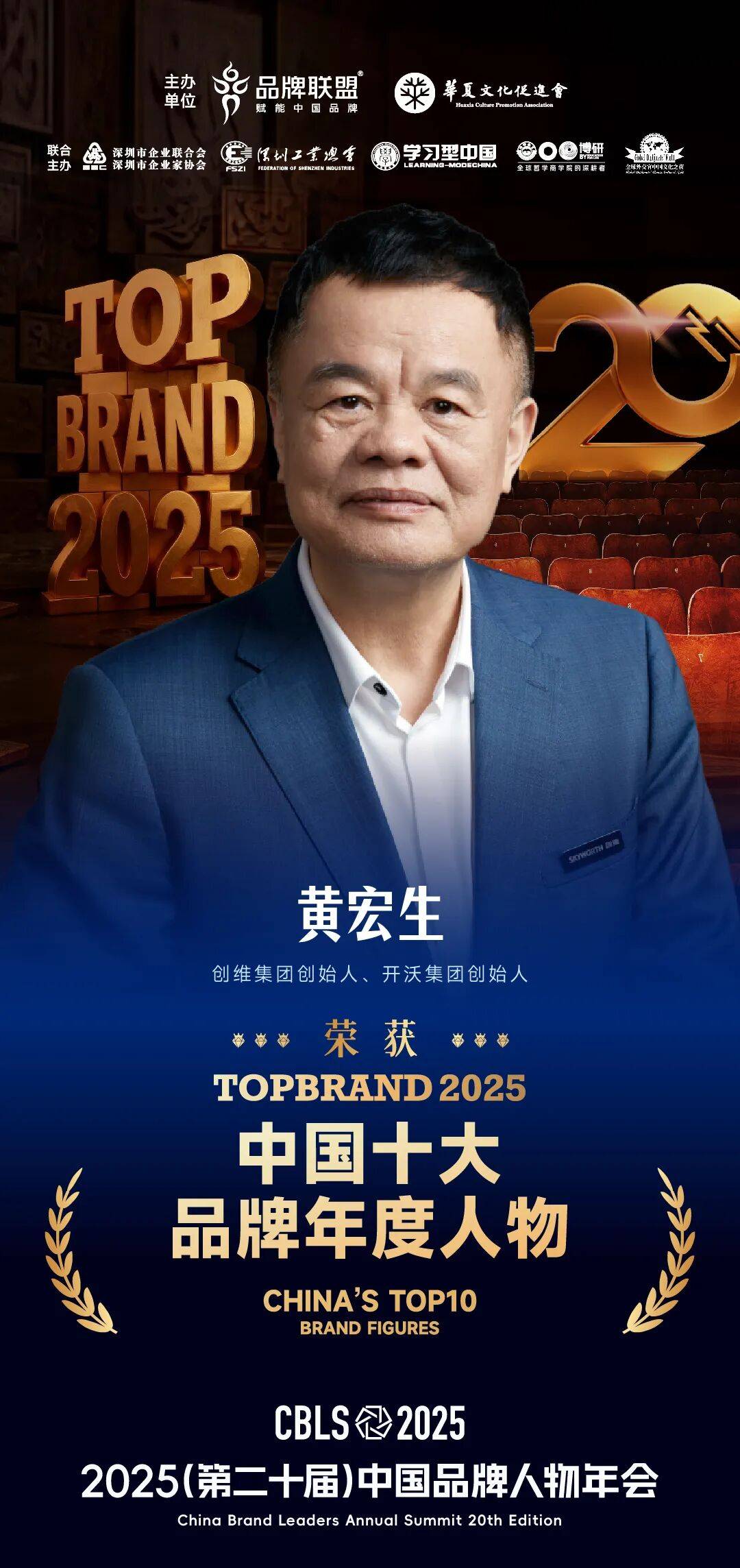 12月29日的荣耀盛典上,“TopBrand 2025中国十大品牌年度人物”隆重揭晓,创维集团、开沃集团创始人黄宏生凭其近40年坚守,从家电龙头到新能源生态构建者,以创新与远见推动制造业绿色升级的成就获此殊荣。