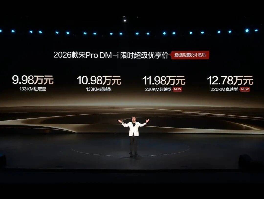 这一次,它不再局限于新能源赛道内的竞争,而是将目光直接投向本田CR-V、丰田RAV4等传统合资燃油SUV。当同级合资燃油车仍凭借品牌光环与“可靠”形象坚守15-20万元价格区间时,2026款宋Pro DM-i长续航版以11.98-12.78万元的亲民定位,提供了纯电通勤的自由、跨省旅行的从容以及全维智能的体验,将家庭出行的价值标杆提升至全新高度。