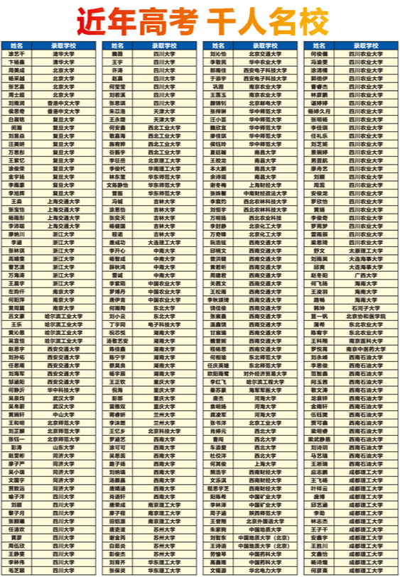 2020年首届高考即旗开得胜,重本、本科上线年第二届高考便收获清北录取通知书;至今六届高考,已有数位同学考入清华大学或北京大学,大批学子被香港中文大学、复旦大学、浙江大学、上海交通大学等顶尖高校录取。