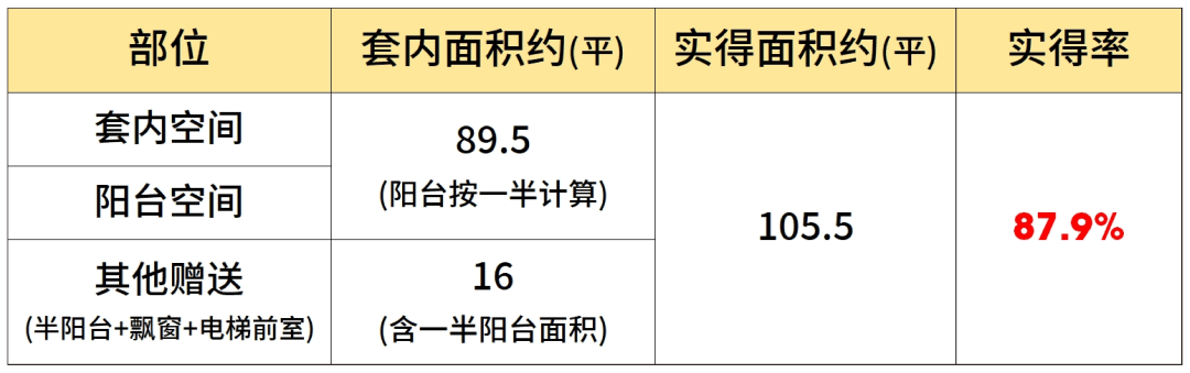 实得率超92%。(该实得率数据根据实得面积预估计算所得,仅供参考,不作为置业依据。最终得房率以购房合同为准)