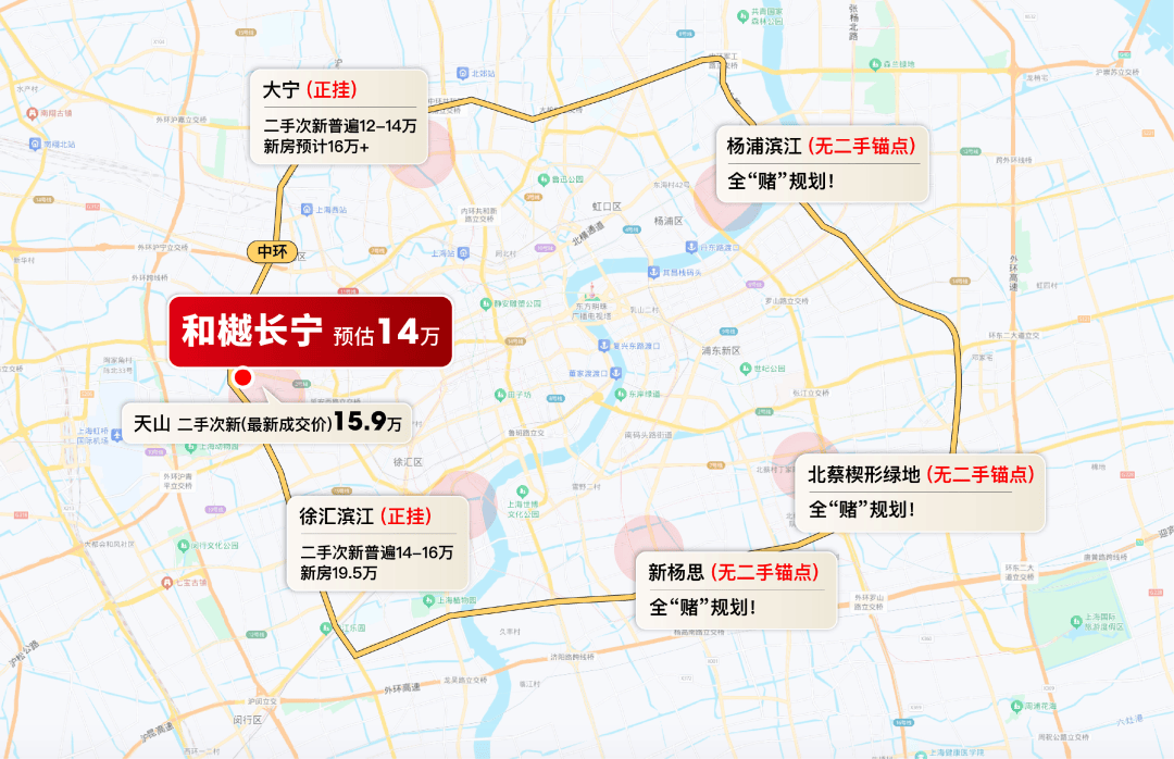 既然天山路住宅收官,我们放大视角来看周边新地:与和樾长宁同环线的吴中路光明乳品厂地块预计售价至少16-18万/㎡(旁边的古北壹号挂牌价超过22万/㎡)。与和樾长宁同2号线的中山公园地块预计售价或超过20万/㎡。